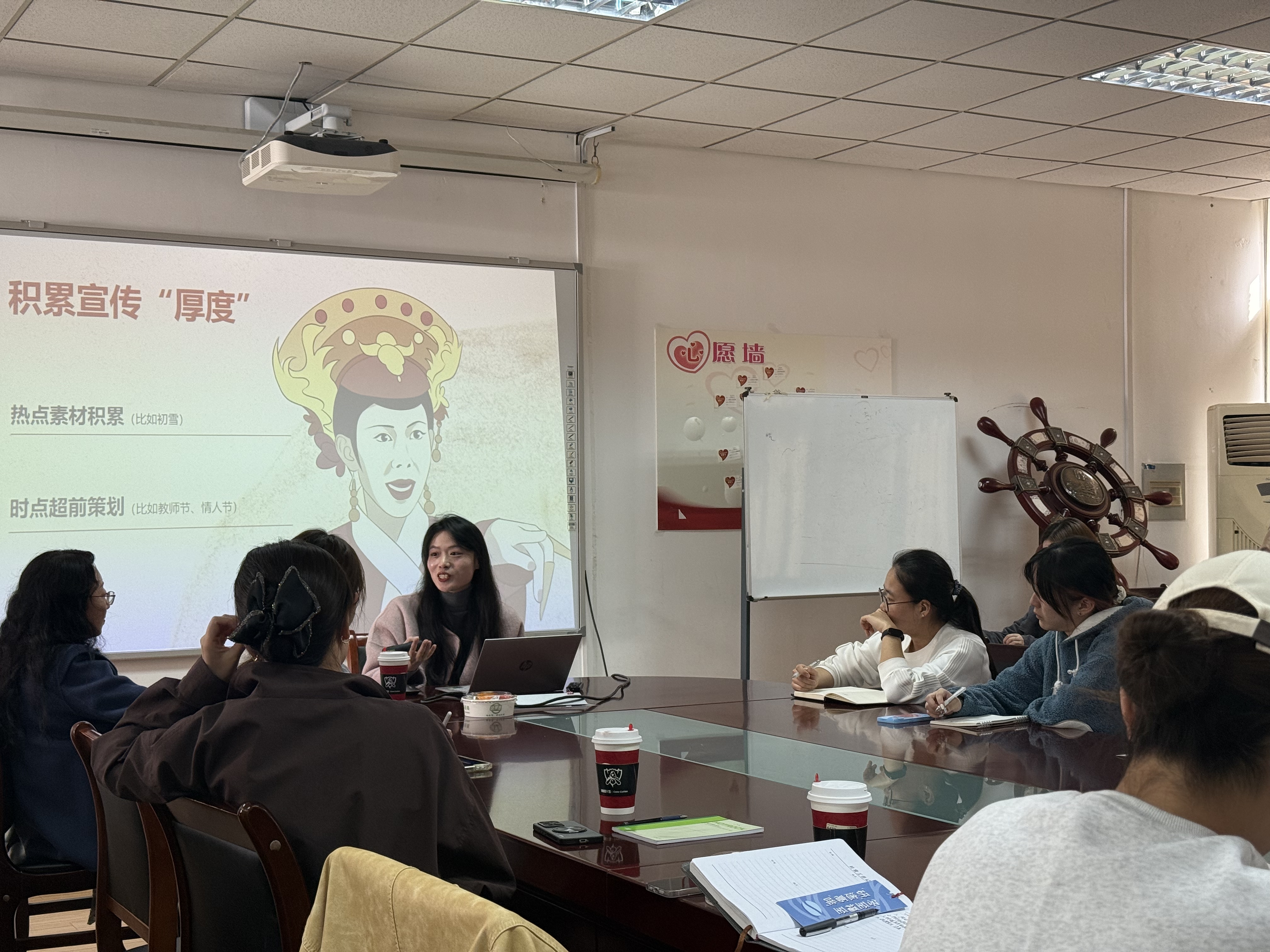培训会上,李敏老师以 “新闻稿与公众号推文如何进行编辑与推送” 为主题,围绕如何让学院宣传更高效、更具吸引力展开了深入浅出的讲解。李敏老师从找好宣传角度、把握好宣传准度、积累宣传厚度、扩大宣传广度等多个方面展开了具体方法的论述。其中在找好宣传角度的部分中,李敏老师将“人无我有”的理念作为核心观点,以迎新活动的公众号编辑为例,重点指出在当下信息过载的环境下,公众号的切入点应具有创新性,可以以小切口进入选取侧重点,再从大角度出来反映核心内容,使文章更具有可读性。同时李敏老师还强调了标题作为推文的第一外表的重要性,明确了标题是否具有吸引力,是该则推文是否能获得较多关注的关键。