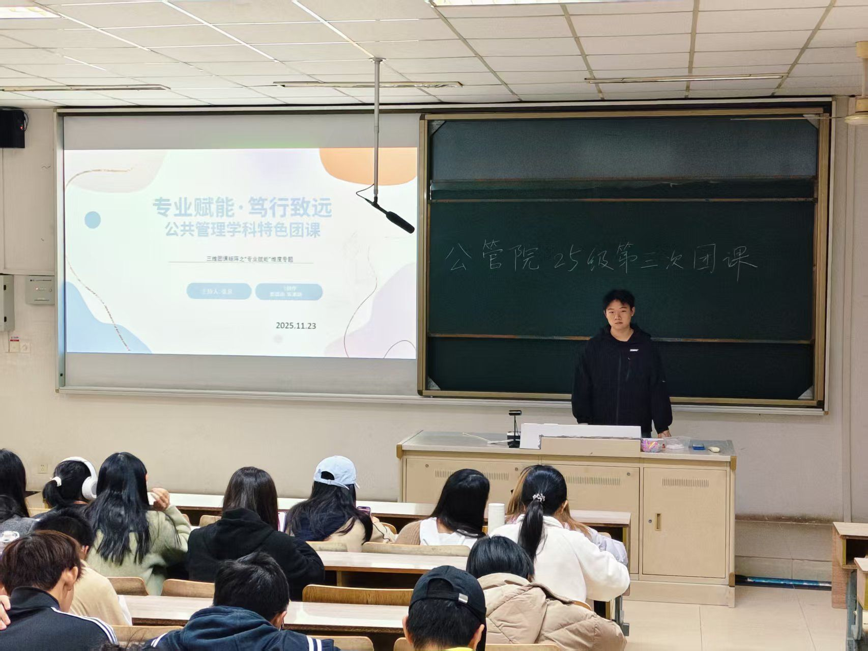 为深学笃行新时代思想理念,强化青年团员的专业认同与使命担当,激励广大同学在知行合一中锤炼本领、贡献青春力量,11月23日,公共管理学院团委活公办精心组织了以“专业赋能,笃行致远”为主题的第三次团课学习活动。本次活动旨在引导同学们将专业学习与时代发展紧密结合,筑牢成长根基,明确前行方向。