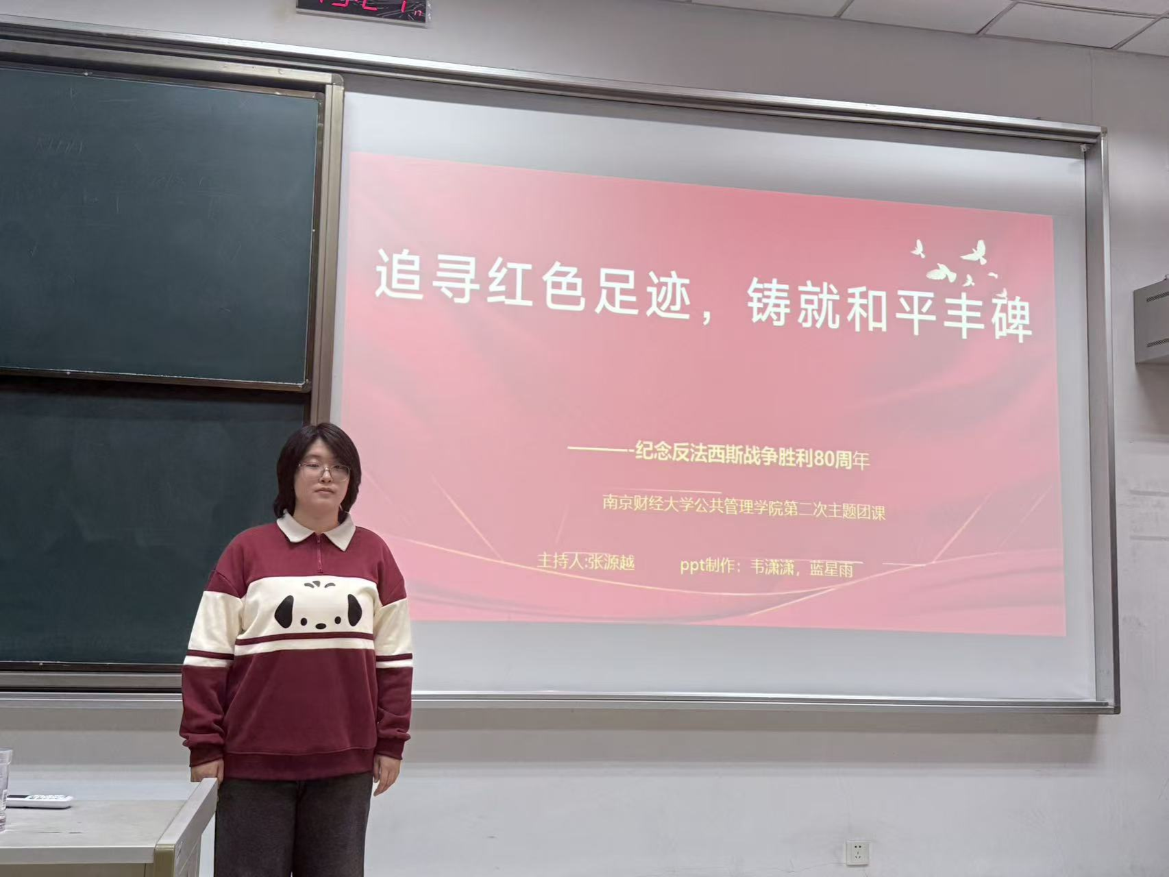 八十载春秋更迭,战争的硝烟早已散去,但历史的回响依然叩击心灵。10月26日,南京财经大学公共管理学院开展了“追寻红色足迹,铸就和平丰碑”主题团课,带领我们穿越时空,与那段峥嵘岁月展开一场深刻的对话。本次团课由活公办张源越同学主持,我院大一全体成员和大二同学代表参加。这不仅是一次历史教育,更是一场精神的洗礼,让红色基因在新时代青年血脉中赓续传承。