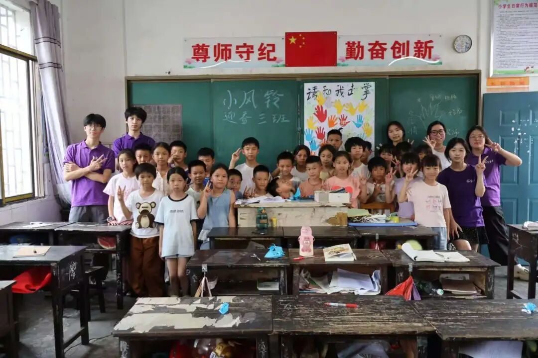 今年7月8日起,南京财经大学阳光公益团队(小风铃支教队)以2025年暑期“三下乡”为契机,依托南京励志阳光心汇心基金会、南京柯菲平公益基金会支持,与郴州市迎春镇中心校多方共建,来到湖南省郴州市迎春镇中心小学,举办了为期11天的“风铃悠扬、跨越山海”暑期夏令营活动。